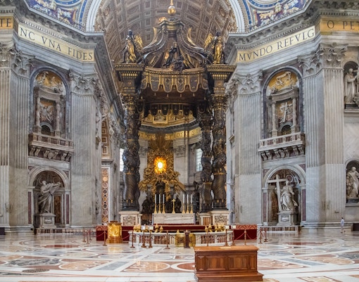 Peteralteret ligger inne i Peterskirken. Den ligger ytterst i Basilikaen, rett under kuppelen, og er midtpunktet i kirkens interiør. Når du er inne i basilikaen, er det bare å gå mot hovedalterområdet. Alteret ligger rett over Peters grav, så når du går mot det store sentrale området, passerer du under Berninis storslåtte Baldakin, den ikoniske bronsebaldakinen. Hvis du allerede er inne, er det umulig å gå glipp av det - alteret er det sentrale elementet som trekker alles blikk mot seg.
